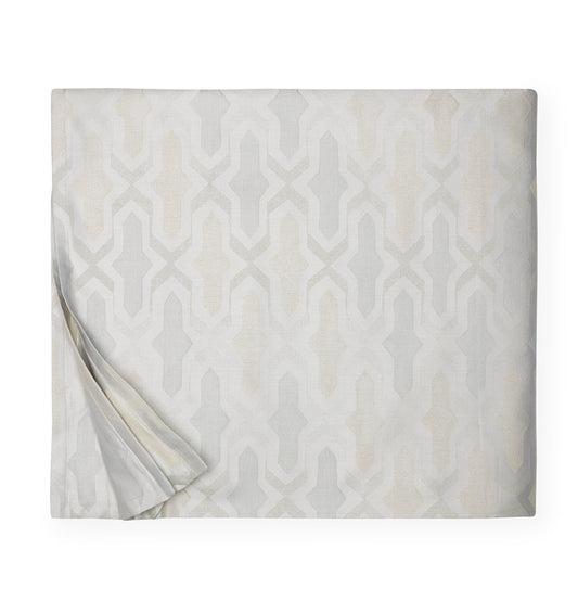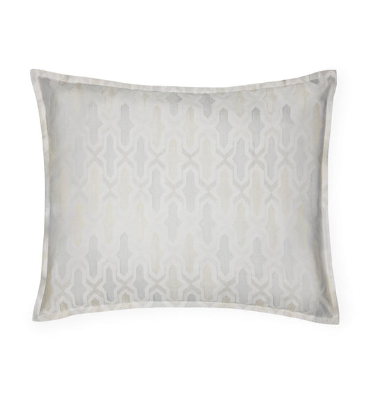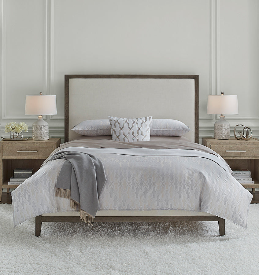 Inspired by Venetian plaster, Barga is woven with a bold, geometric tilework pattern in tonal grey, taupe, and white yarns. The subtle textural design, woven from yarn-dyed fibers in a sateen weave, is finished with mini flanges to create a true masterwork of modern sophistication.
