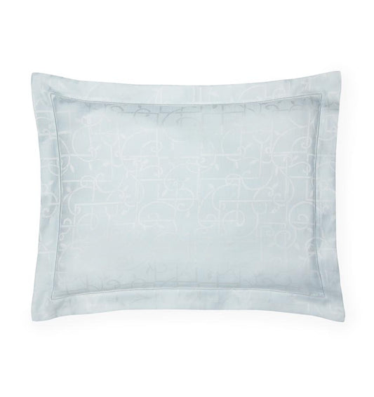 A pictorial trellis pattern elegantly adorns the Gratticio bedding collection in a blue yarn-dyed sateen weave. This luxury spring bedding is finished with hemstitching along the edges. Shop SFERRA's blue duvet cover and shams.
