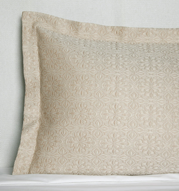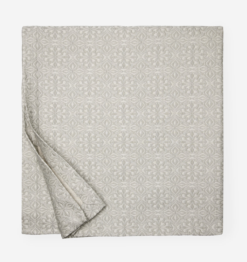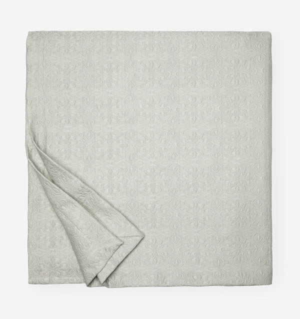 A nod to centuries-old tile motifs, Veroli’s intricate pattern is yarn-dyed and woven in Italy into a soft, lucent, lightweight coverlet.