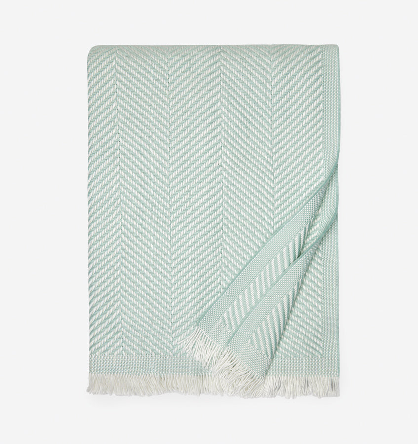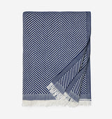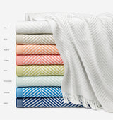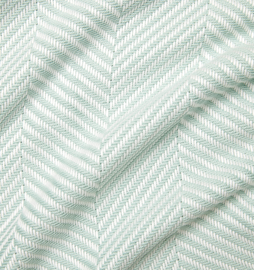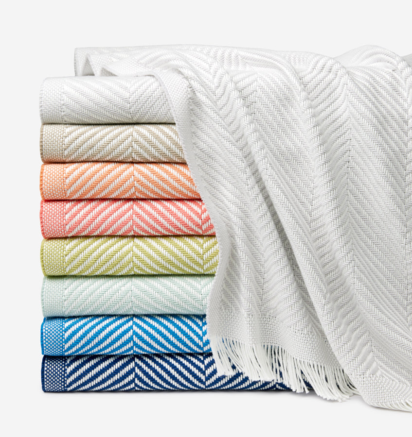 White and colorful threads are woven into a crisp herringbone pattern in Costa, a lightweight cotton throw redolent of sun-dappled mornings in Nantucket.