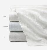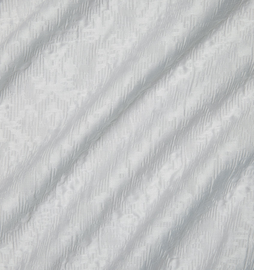Aldino’s dappled texture is created by overlaying an abstract sateen weave pattern over a linear background—realizing a dreamy surface reminiscent of the glistening waters flowing through rocky, mountain creeks.