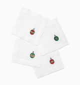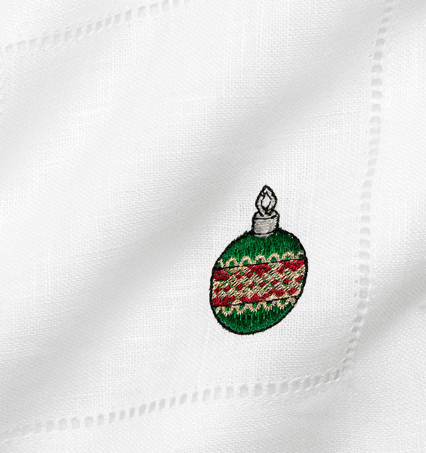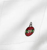 Deck the halls with our exquisite Bagattelle Christmas ornament cocktail napkins. These pure linen embroidered cocktail napkins are the perfect companion for festive drinks and appetizers, and are a stylish gift for any host during the holiday season.
