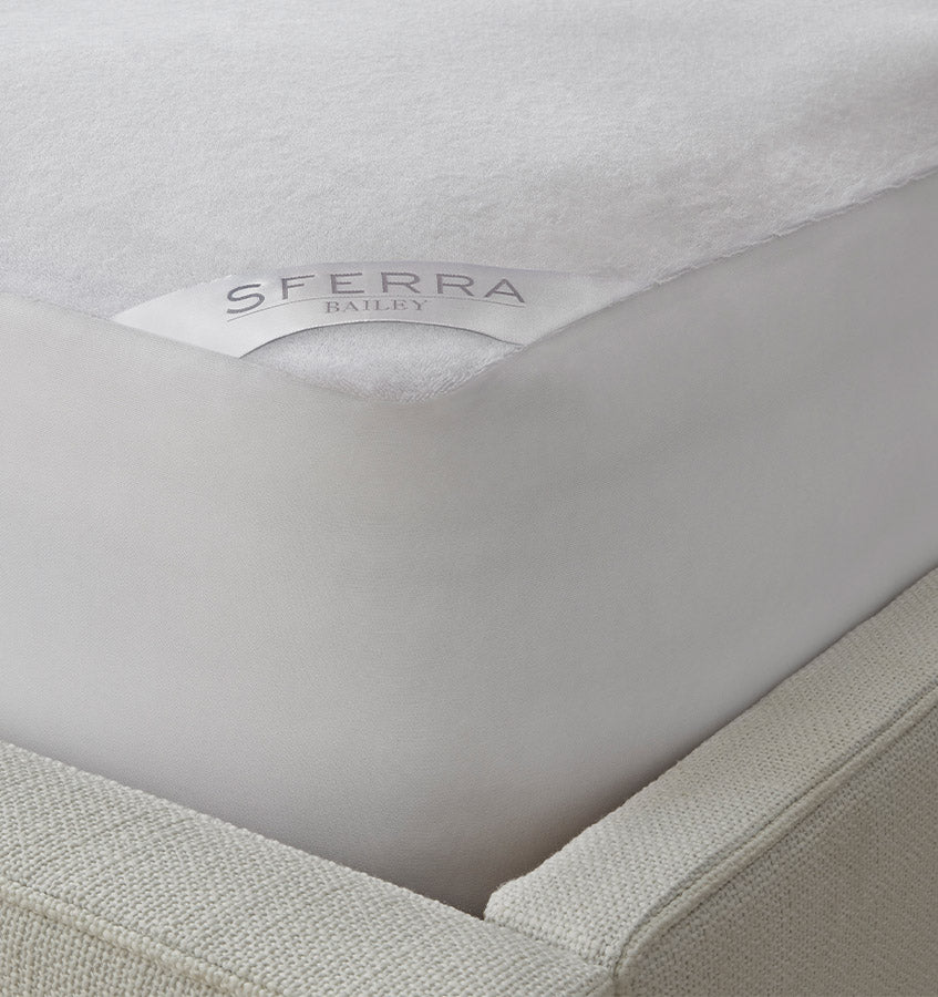 Rest assured with our Bailey mattress protector. Crafted from soft cotton terry with a waterproof finish, this protective barrier adds a layer of comfort to the bed while keeping your mattress safe from wear and tear. Elasticized side walls hug the mattress perfectly.