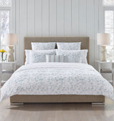 This sumptuous pure cotton sateen bedding features a watercolor-inspired floral in cool blues and grays, printed in Italy.