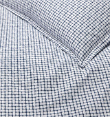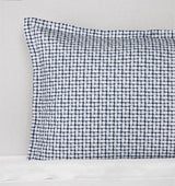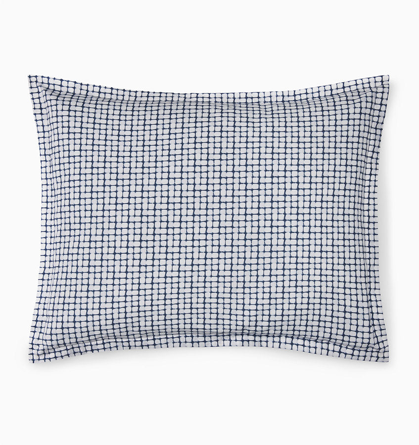 Featured Pairings: Caselle collection pairs well with Estate white/navy flat sheet and pillowcases, Grande Hotel white fitted sheet. Hatteras white coverlet, Falerna decorative pillow and Matese navy throw.