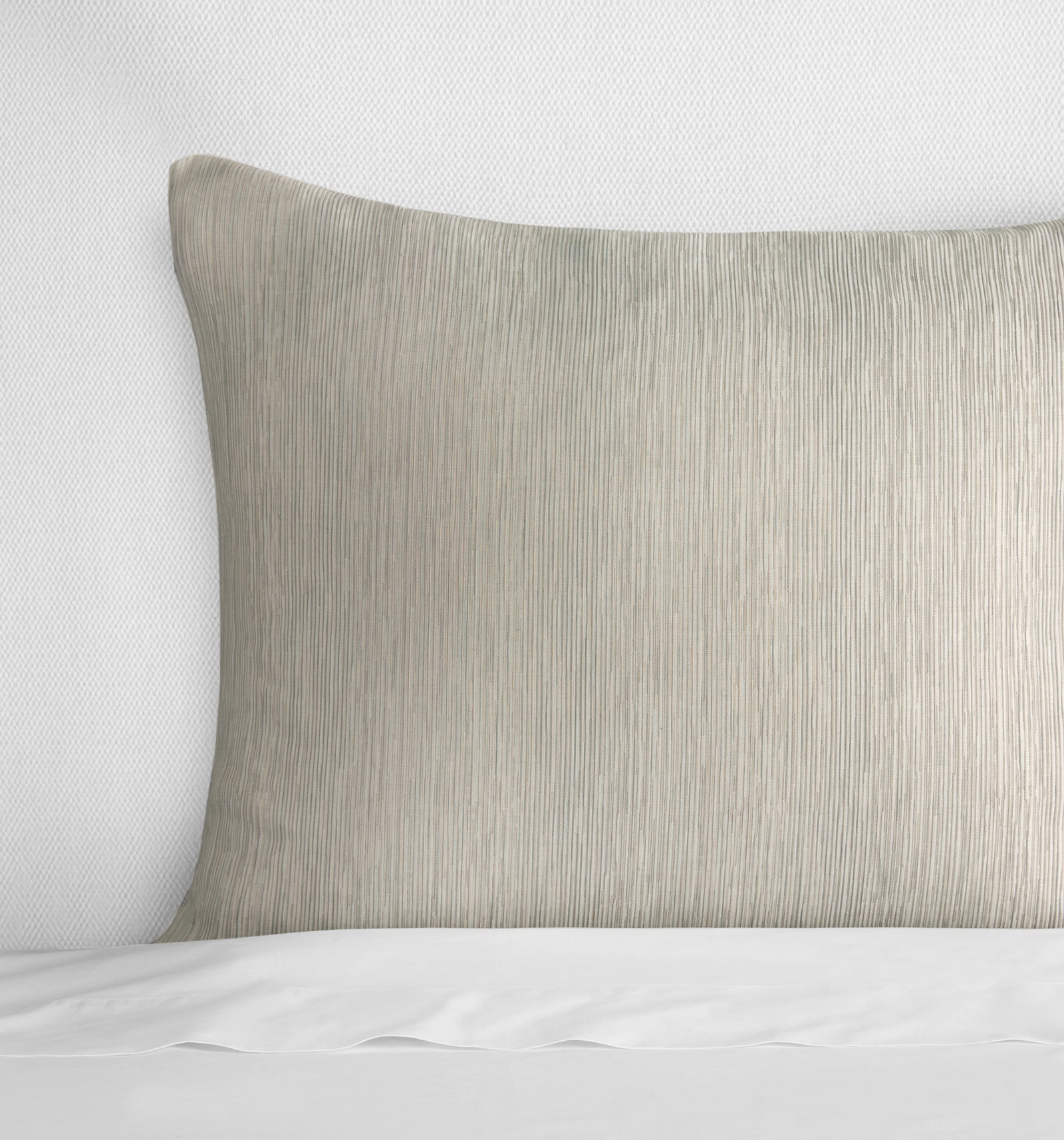 Featured Pairings: Cloister collection pairs well with Giotto grey fitted sheet, flat sheet and pillowcases, hatteras white coverlet, Pettra beige decorative pillow.