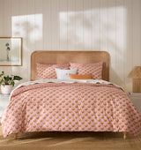 Featured Pairings: Enda pink/orange collection pairs well with Fiona ivory fitted sheet, flat sheet and pillowcases, Perrio ivory coverlet, Gingko white/russet decorative pillow and Ruggenti russet decorative pillow.