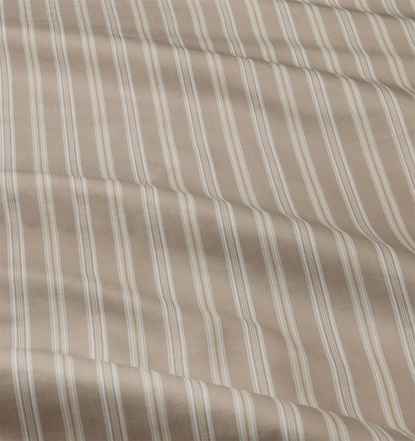 A yarn-dyed sateen jacquard adorned with understated stripes graces a minimalist palette of sand. Within the unassuming simplicity of the Italian-made Leranto, its sartorial quality radiates like a hidden gem, quietly captivating discerning eyes.
