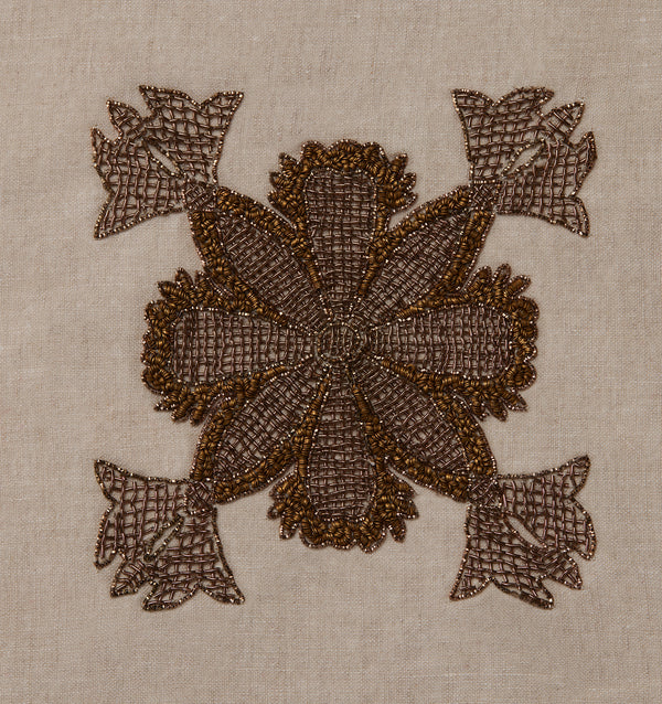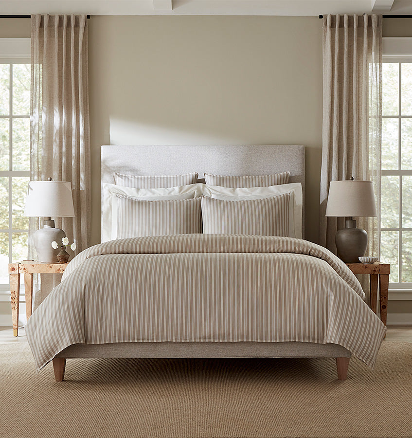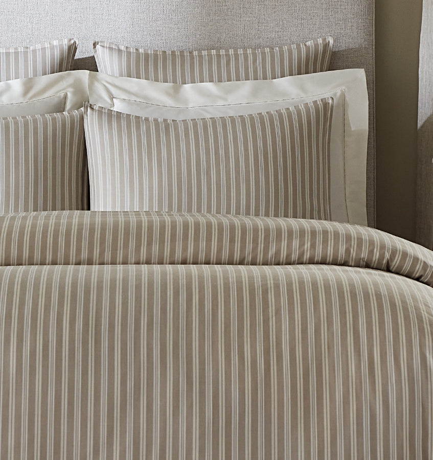Featured Pairings: Leranto collection pairs well with Giotto ivory fitted sheet, flat sheet and pillowcases. Perrio ivory coverlet, Viletta oat/beige throw and Neviano decorative pillow.