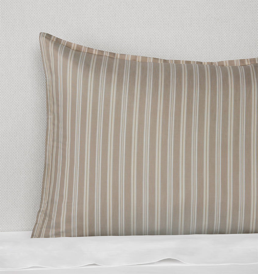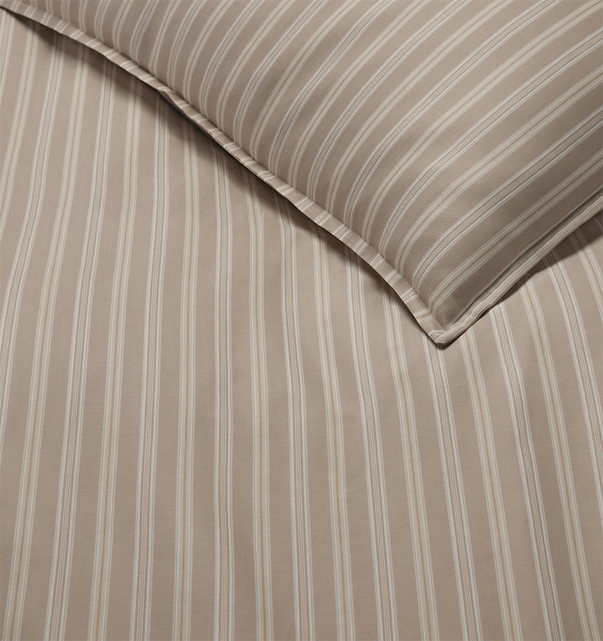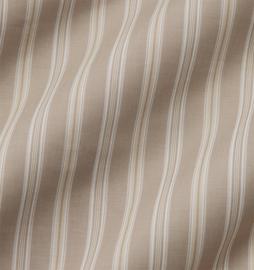 A yarn-dyed sateen jacquard adorned with understated stripes graces a minimalist palette of sand. Within the unassuming simplicity of the Italian-made Leranto, its sartorial quality radiates like a hidden gem, quietly captivating discerning eyes.