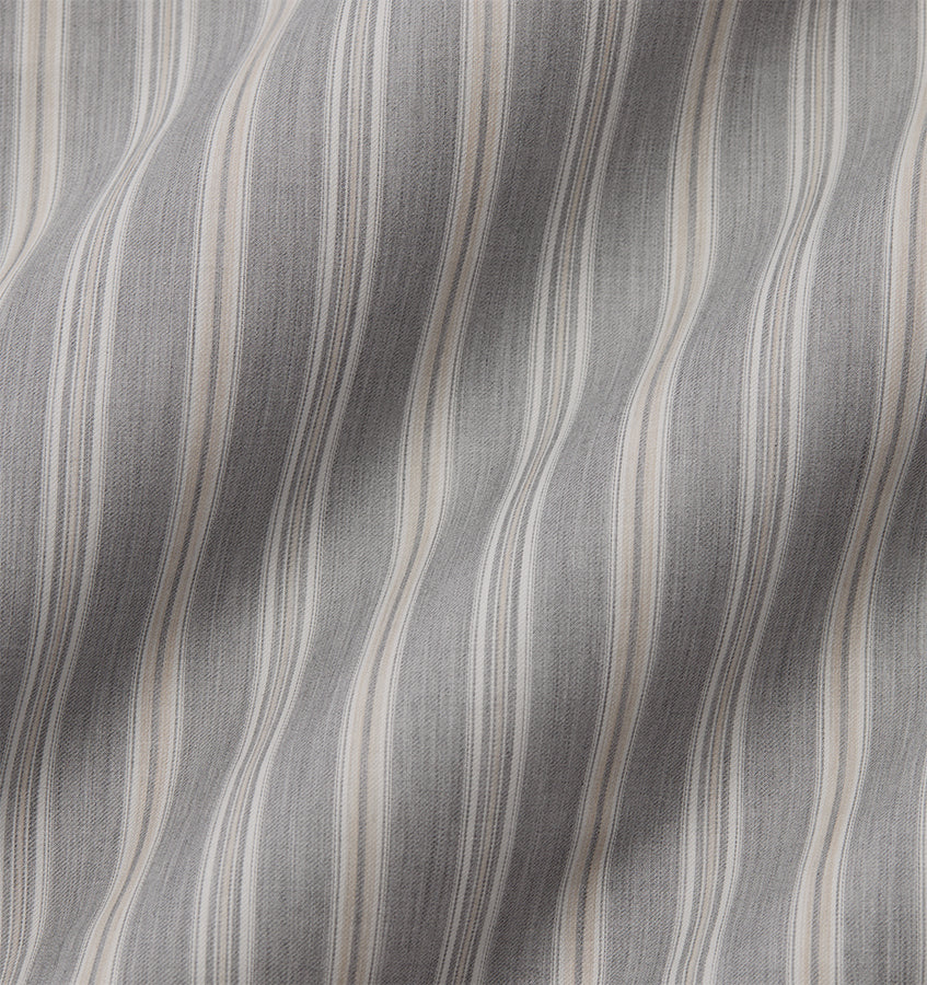 A yarn-dyed sateen jacquard adorned with understated stripes graces a minimalist palette of titanium. Within the unassuming simplicity of the Italian-made Leranto, its sartorial quality radiates like a hidden gem, quietly captivating discerning eyes.