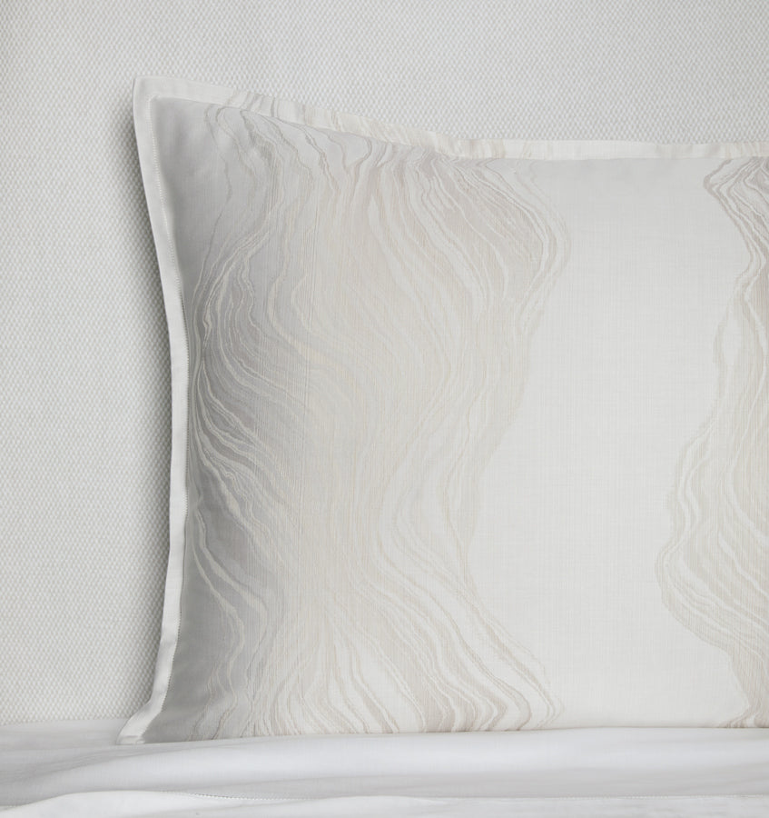 Reminiscent of the wondrous linear patterns formed on our natural landscape over time, Melba’s design features organic lines rendered on smooth sateen jacquard. The subtle striations of taupe and grey tones intertwine to create an understated look of grandeur and depth.