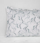 In a mesmerizing dance of gentle brushstrokes, a cool palette of slate twists and curves across a canvas woven from 100% Italian long-staple cotton sateen to give birth to