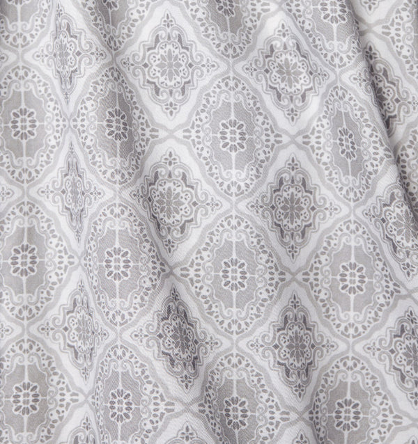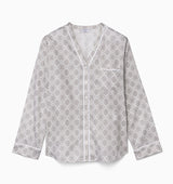 The Ravenna loungewear collection seamlessly marries opulence with comfort. Inspired by the rich Italian architecture and intricate ceramic tilework of Ravenna, this collection invites you to indulge in moments of repose. Crafted from printed cotton sateen fabric, its all-over ornamental pattern in tin and white exudes understated luxury. Delicate piping along the cuffed hems adds thoughtful detail, making this top a wearable masterpiece. Whether you’re sipping espresso on a sun-drenched terrace or curling up with a book, let the Ravenna loungewear embrace you in every thread.