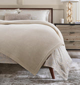 With Talida, we constructed a traditional waffle weave—known to hold warmth—with two tonal shades to create depth and texture. It is woven with the finest Merino wool for a super soft, luxurious blanket ideal for layering.