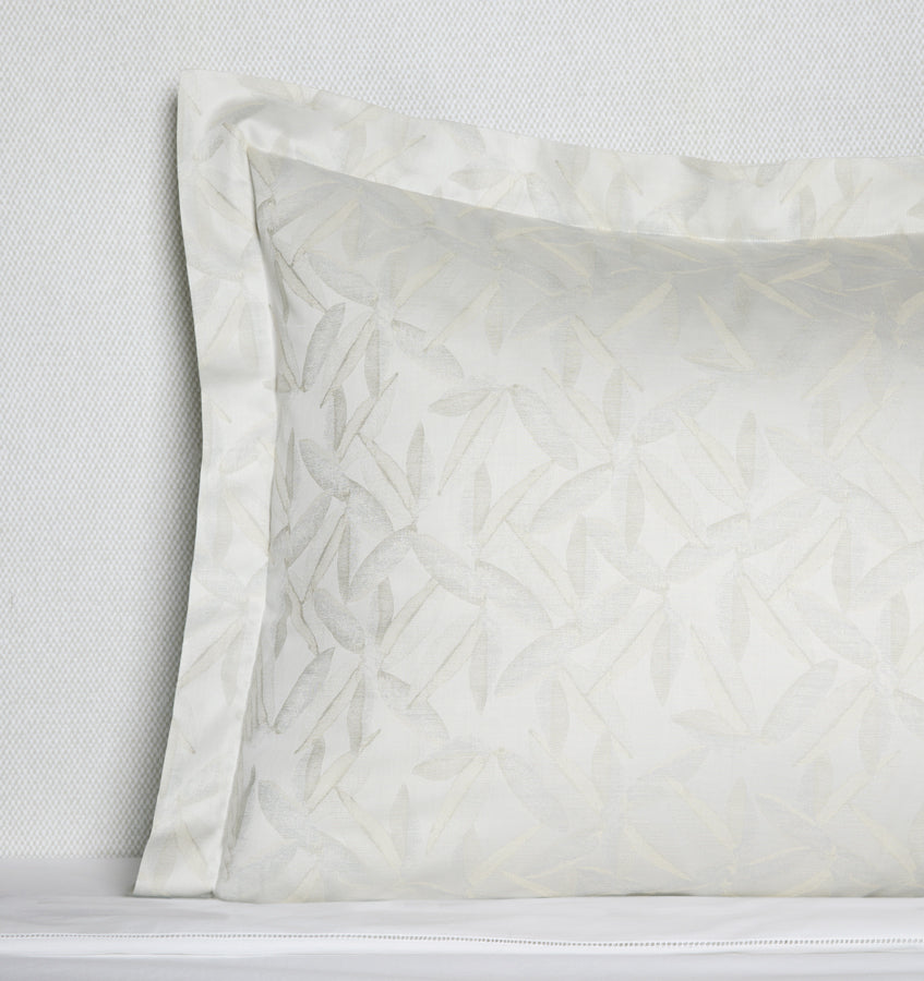 Inspired by the blooming white willow, Terracina is an Italian-woven sateen jacquard with an all-over leaf pattern in pale green and aquamarine yarns.