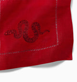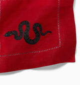 Elegance Meets Serpent-Chic: Our Snake table linens collection. Step into a world where sophistication intertwines with the enigmatic allure of the snake. Our meticulously crafted pure Festival linen cocktail napkins boast exquisite snake motifs intricately embroidered with the graceful curves of the snakes, symbolizing wisdom, transformation, and renewal.
